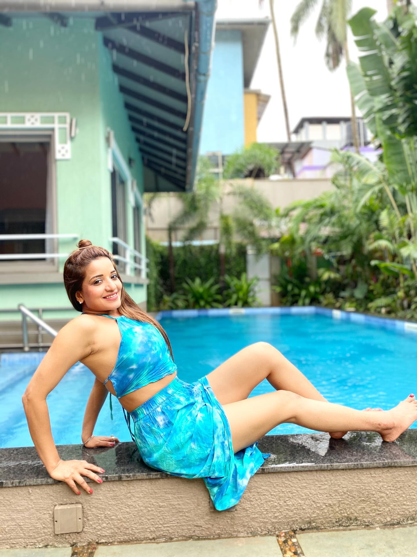 इन तस्वीरों में मोनालिसा पूल के किनारे रिलीविंग और स्टाइलिश ड्रेस पहने नजर आ रही हैं. यह आउटफिट उनकी फिटनेस और कॉन्फिडेंट लुक को पूरी तरह से कॉम्प्लिमेंट कर रहा है.