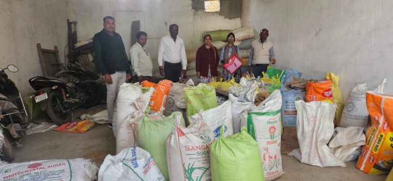सारंगढ़-बिलाईगढ़, (आर.एन.एस.) 18 नवंबर 2025/सारंगढ़ तहसील के ग्राम भोजपुर में मंडी के पंजीकृत फर्म गोगाजी ट्रेडर्स के गोदाम परिसर में धान मात्रा 130 बोरी (52 क्विंटल) एवं ग्राम छिंद में यश ट्रेडर्स के गोदाम परिसर में धान मात्रा 115 बोरी (46 क्विंटल) अवैध भंडारित होने के कारण मंडी अधिनियम के तहत जप्ती प्रकरण बनाया गया। जांच दल में मंडी सचिव राजेन्द्र कुमार ध्रुव उपनिरीक्षक अंजू दिनकर प्रीति तिर्की एव डी के साहू, जगदीश बरेठ शामिल रहे। इसी प्रकार बिलाईगढ़ क्षेत्र के ग्राम गिरसा निवासी भगतराम साहू के प्रतिष्ठान में मंडी अधिकारियों कर्मचारियों द्वारा जांच पर 50 बोरी धान वजन 20 क्विंटल अवैध रूप से भंडारित कर रखा पाया गया, जिसे मंडी अधिनियम द्वारा जप्त करने की कार्यवाही की गई।