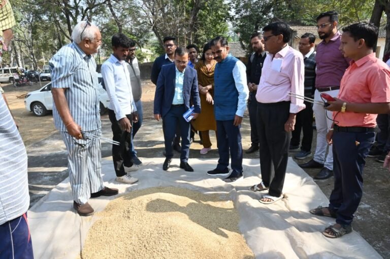 धान की गुणवत्ता, आद्र्रता मापी यंत्र से धान की नमी और इलेक्ट्रॉनिक तौल मशीन के माध्यम से धान तौलाई का किया अवलोकन