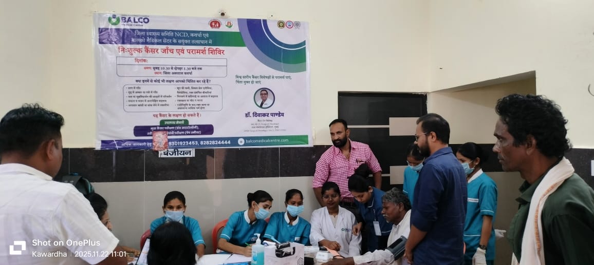 इसी क्रम में कलेक्टर श्री गोपाल वर्मा के मार्गदर्शन में आज जिला अस्पताल परिसर में कैंसर जांच शिविर का आयोजन किया गया। शिविर में बालको के कैंसर विशेषज्ञ डॉ. दिवाकर पांडे द्वारा विभिन्न प्रकार के कैंसर से संभावित मरीजों की जांच की गई। कुल 39 लोगों की जांच की गई, जिनमें से 15 मरीजों के परिणाम पॉजिटिव मिले।