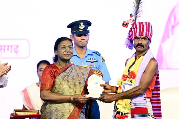 0 राष्ट्रपति श्रीमती द्रौपदी मुर्मू ने 2.50 लाख रुपए की पुरस्कार राशि एवं स्मृति चिन्ह भेंटकर किया सम्मानित