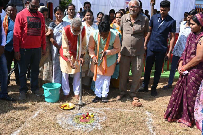 ० परचनपाल में महतारी सदन का भूमिपूजन किया सांसद महेश कश्यप ने