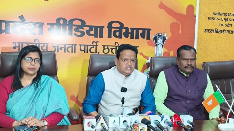 पत्रकार वार्ता में अनुसूचित जनजाति मोर्चा के प्रदेश अध्यक्ष सत्यनारायण सिंह ठाकुर व प्रदेश प्रवक्ता डॉ. किरण बघेल उपस्थित थे।
