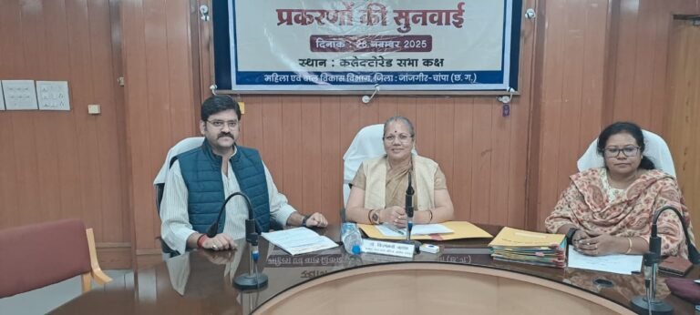 जांजगीर-चांपा 26 नवम्बर 2025(आरएनएस )छत्तीसगढ़ राज्य महिला आयोग की अध्यक्ष डॉ. किरणमयी नायक ने कलेक्ट्रोरेट सभाकक्ष जांजगीर में महिला उत्पीड़न से संबंधित प्रस्तुत प्रकरणों पर जनसुनवाई की। छत्तीसगढ़ राज्य महिला आयोग की अध्यक्ष डॉ. किरणमयी नायक की अध्यक्षता में आज प्रदेश स्तर की 352 व जांजगीर-चांपा जिले में 13 वीं सुनवाई हुई। इस दौरान विधायक अकलतरा राघवेन्द्र कुमार सिंह उपस्थित थे।
