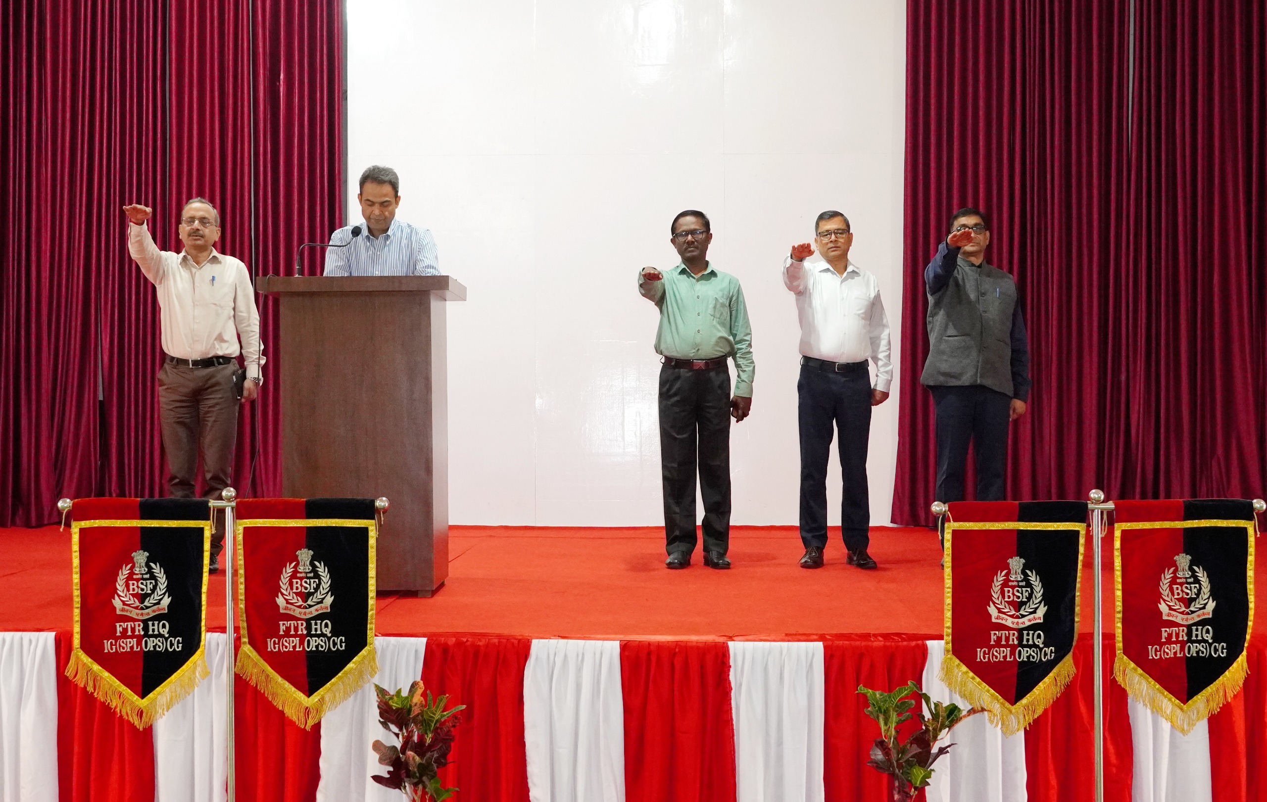 प्रतिवर्ष की भांति इस वर्ष आयोजित औपचारिक समारोह में सामरिक मुख्यालय, सीमा सुरक्षा बल (विशेष-संक्रिया), छत्तीसगढ़ के महानिरीक्षक आनंद प्रताप सिंह, भारतीय पुलिस सेवा, के नेतृत्व में उपस्थित अधिकारियों, अधीनस्थ अधिकारियों एवं जवानों ने सामूहिक रूप से संविधान की प्रस्तावना का वाचन कर संविधान शपथ दोहराई। सभी ने यह संकल्प लिया कि हम भारत के संविधान के प्रति पूर्ण श्रद्धा और सच्ची निष्ठा रखेंगे, विधि द्वारा स्थापित व्यवस्था का पालन करेंगे तथा भारत की संप्रभुता, एकता और अखंडता की रक्षा करेंगे। कार्यक्रम का समापन संविधान में निहित मूल्यों भिलाई न्याय, स्वतंत्रता, समानता एवं बंधुत्व को सदैव प्रतिष्ठित रखने और समाज में संवैधानिक चेतना को निरंतर बढ़ावा देने के संदेश के साथ किया गया।