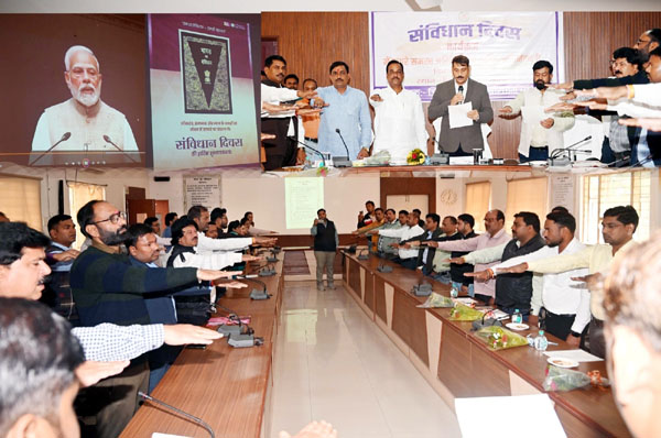 0 कलेक्टर, जिला पंचायत अध्यक्ष सहित जनप्रतिनिधि अधिकारियों ने संविधान की प्रस्तावना का किया सामूहिक पठन