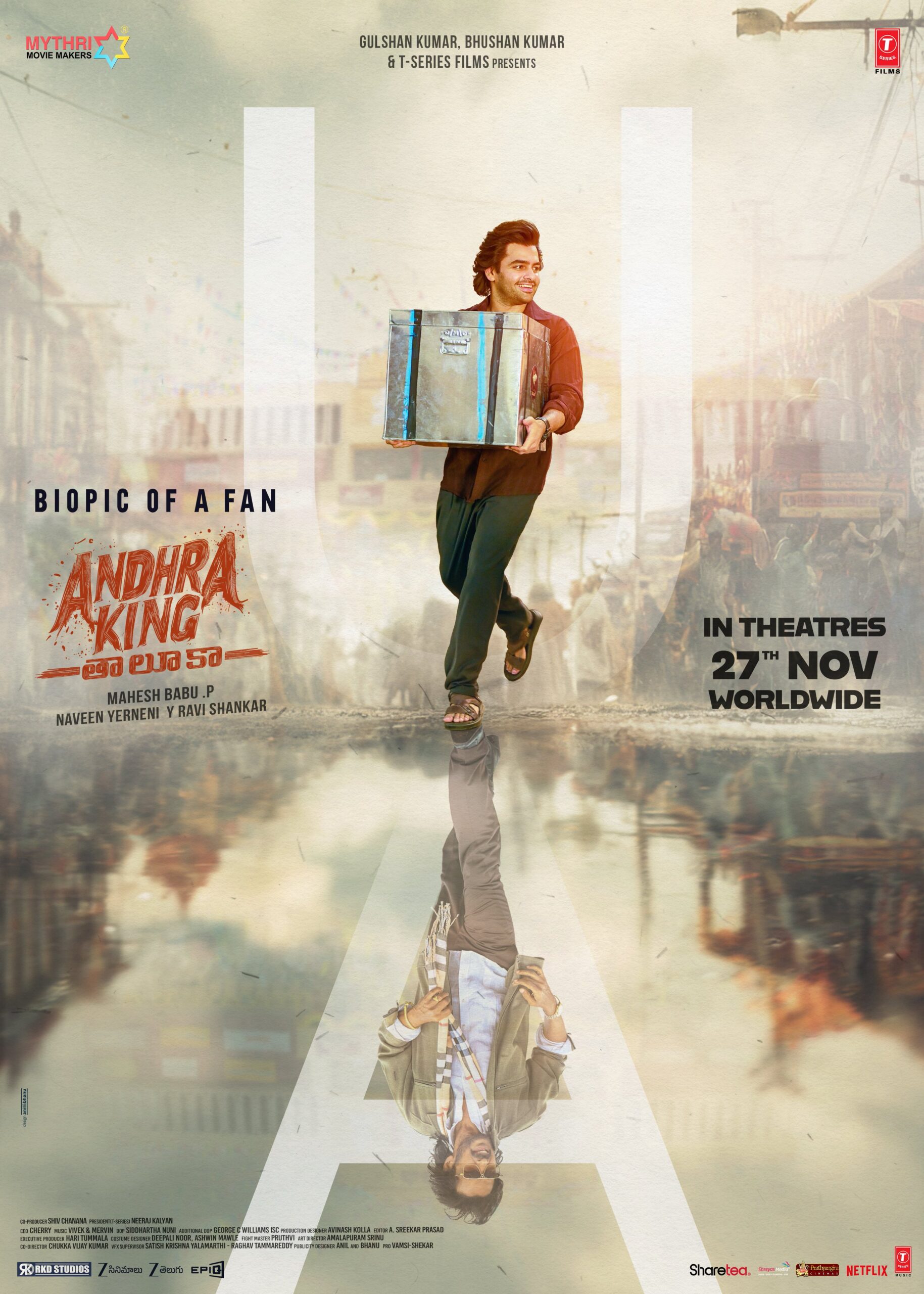 अपनी एक्स टाइमलाइन पर, फिल्म को प्रोड्यूस करने वाले प्रोडक्शन हाउस, माइथ्री मूवी मेकर्स ने लिखा, यह आंध्रकिंगतालुका के लिए यू/ए है। सभी के लिए एक फिल्म, सभी से जुड़ी हुई फिल्म। 27 नवंबर को दुनिया भर में ग्रैंड रिलीज़। बुकिंग अभी शुरू!
