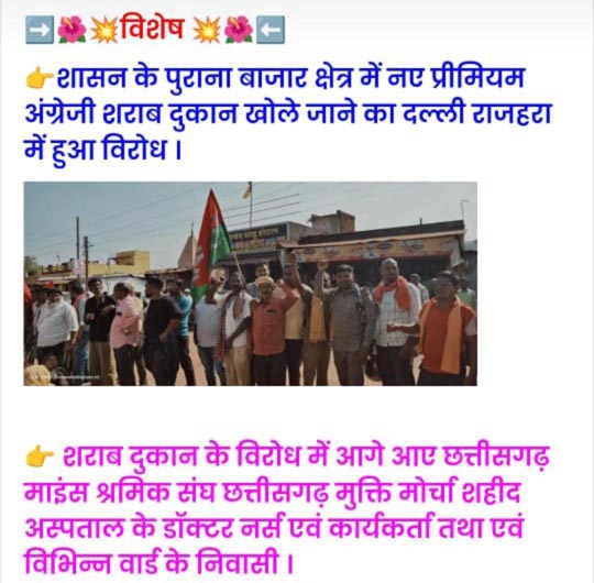 शहीद अस्पताल के डाक्टर, नर्स, पैथोलॉजी स्टॉफ व अस्पताल के सभी स्टॉफ द्वारा अस्पताल को छोड़कर छत्तीसगढ़ मुक्ति मोर्चा के आंदोलन मे पूरा एक दिन शामिल हो कर छत्तीसगढ़ शासन के खिलाफ धरना प्रदर्शन व नारेबाजी करते रहे। ज्ञात हो कि शासन की योजना के तहत प्रदेश के हर नगर में प्रीमियम वाइन शॉप खोली जा रही है। इसी पहल का विरोध करने के लिए शहीद अस्पताल के कर्मचारी दिनभर आंदोलन में शामिल हुए। स्वास्थ्य सेवा जैसी आवश्यक सेवा को दरकिनार करते हुए अस्पताल के मरीजों की जान जोखिम मे डालकर डॉक्टरों, नर्सो और पूरे स्टाफ का आंदोलन में शामिल होना गंभीर मुद्दा है। पूर्व मे भी शहीद अस्पताल के स्टॉफ द्वारा हर आंदोलन मे अस्पताल की व्यवस्था को खराब किया गया है। शहीद अस्पताल के पूर्व मे भी कई आपत्तिजनक और लापरवाही भरे कृत्य सामने आ चुके हैं, जो कि अस्पताल प्रबंधन पर सवालिया निशान लगता है। इस मसले को लेकर नगरवासियो में भारी रोष व्याप्त है। नगरवासियों ने शासन प्रशासन से मांग की है कि इस मामले को संज्ञान मे लेते हुए कड़ी से कड़ी कार्रवाही की जाए जिस से मरीजों को उचित स्वास्थ्य लाभ मिल सके तथा मरीजों की जान से खिलवाड़ करने का प्रयास शहीद अस्पताल प्रबंधन दोबारा न कर सके।