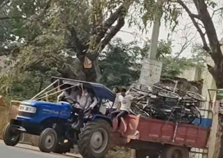 सारंगढ़-बिलाईगढ़, 27 नवम्बर (आरएनएस)।* शासकीय उच्चतर माध्यमिक विद्यालय सलौनीकला में छात्रों की सुरक्षा से जुड़ी गंभीर लापरवाही सामने आई है। सरकारी योजना के तहत मिली साइकिलों को स्कूल लाने के लिए जिन ट्रैक्टरों का उपयोग किया जा रहा था, उन्हें बच्चों से ही चलवाकर विद्यालय भेजा गया। इस दौरान किसी भी प्रकार की सुरक्षा व्यवस्था नहीं थी। घटना का वीडियो सामने आने के बाद अभिभावकों में गहरा आक्रोश फैल गया है। जानकारी के अनुसार, बुधवार को स्वामी आत्मानंद उत्कृष्ट अंग्रेजी माध्यम प्रेमभुवन प्रताप सिंह शासकीय विद्यालय में विभिन्न स्कूलों के प्राचार्यों को योजना के तहत साइकिलें वितरित की गई थीं। लेकिन सलौनीकला विद्यालय प्रबंधन ने साइकिलों को ट्रैक्टर में लादकर ले जाने के लिए बच्चों को ही ट्रैक्टर चलाने के लिए बैठा दिया। भारी वाहन चलाते नाबालिग छात्रों का वीडियो सामने आने के बाद मामले की गंभीरता और बढ़ गई है। अभिभावक सवाल उठा रहे हैं कि बच्चों को भारी वाहन चलाने की अनुमति किसने दी और यदि कोई दुर्घटना हो जाती तो उसकी जिम्मेदारी कौन लेता। बिना निगरानी और सुरक्षा उपायों के बच्चों को ट्रैक्टर चलवाना विद्यालय प्रबंधन की गंभीर लापरवाही मानी जा रही है। प्रभारी प्राचार्य कुमार चौहान ने इसे थोड़ी सी गलती बताकर मामला टालने की कोशिश की, लेकिन उनका यह बयान भी विवादों में है। अभिभावकों का कहना है कि बच्चों की सुरक्षा को छोटी गलती बताकर नजऱअंदाज़ नहीं किया जा सकता। स्कूल प्रशासन को यह सुनिश्चित करना चाहिए था कि साइकिलें सुरक्षित तरीके से विद्यालय पहुंचें। घटना की जानकारी जिला शिक्षा अधिकारी जे.आर. डहरिया तक पहुंच चुकी है। उन्होंने बताया कि मामले की जांच कर उचित कार्रवाई की जाएगी। अब सबकी नजरें इस पर टिकी हैं कि शिक्षा विभाग और जिला प्रशासन इस गंभीर लापरवाही पर कितना सख्त कदम उठाते हैं और क्या जिम्मेदार लोगों पर प्रभावी कार्रवाई होगी, या मामला औपचारिकता में ही सीमित रह जाएगा।