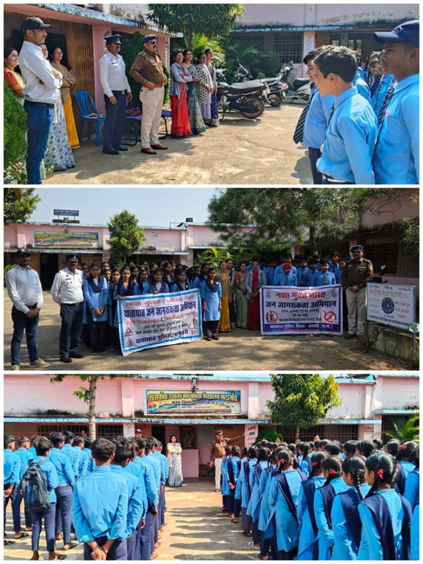 धमतरी,, 28 नवम्बर (आरएनएस)। एसपी के निर्देश पर धमतरी पुलिस यातायात द्वारा धमतरी जिले के शासकीय उच्चतर माध्यमिक विद्यालय भटगांव में आज धमतरी पुलिस द्वारा यातायात जागरूकता अभियान चलाया गया। कार्यक्रम के दौरान छात्र-छात्राओं को यातायात नियमों का पालन, हेलमेट व ीटबेल्ट के उपयोग, ओवरस्पीडिंग एवं लापरवाही से होने वाले दुर्घटनाओं के परिणामों की विस्तार से जानकारी दी गई।यातायात विभाग के धिकारियों ने युवाओं को नशामुक्ति का संदेश देते हुए बताया कि नशा न केवल जीवन को जोखिम में डालता है बल्कि दुर्घटनाओं का प्रमुख कारण भी बनता है। साथ ही समाज में जागरूक नागरिक बनने का आह्वान किया गया।कार्यक्रम में विद्यालय के प्राचार्य, शिक्षकगण, यातायात प्रभारी, यातायात स्टाफ तथा बड़ी संख्या में छात्र-छात्राएँ उपस्थित रहे। सभी ने सुरक्षित यातायात एवं नशामुक्त समाज के निर्माण हेतु मिलकर कार्य करने की प्रतिबद्धता व्यक्त की।धमतरी पुलिस द्वारा ऐसे कार्यक्रम आगे भी लगातार आयोजित किए जाते रहेंगे, ताकि आमजन एवं युवा वर्ग में सड़क सुरक्षा के प्रति जागरूकता बढ़ाई जा सके।