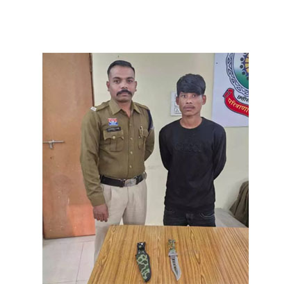 मिली जानकारी के अनुसार 28.11.2025 को थाना कबीर नगर पुलिस द्वारा टाउन पेट्रोलिंग के दौरान संदिग्ध व्यक्तियों की चेकिंग किया जा रहा था इसी दरम्यान बाल्मीकि नगर श्मशान घाट के पास एक व्यक्ति संदिग्ध दिखा जो पुलिस को देखकर छिप रहा था। जिसे घेराबंदी कर पकड़ा गया युवक को पकड़कर उसकी जांच करने पर उसके पास से एक लोहे का धारदार चाकू मिला। युवक ने नाम पता पूछने पर अपना नाम विनोद राणा उर्फ बठुवा पिता सोम बहादुर राणा उम्र 21 वर्ष निवासी गार्डन के पास लंबा ब्लॉक बाल्मीकि नगर थाना कबीर नगर रायपुर का रहने वाला बताया। जिसके बाद पुलिस ने आरोपी के कब्जे से लोहे का धारदार चाकू जप्त कर आरोपी को गिरफ्तार कर लिया। मालमे में आरोपी के विरूद्ध थाना कबीर नगर में अपराध क्रमांक 248/2025 धारा 25 आम्र्स एक्ट अपराध पंजीबद्ध कर कार्यवाही किया गया।