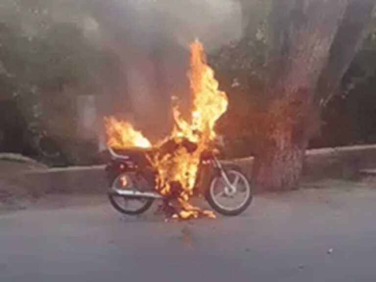 अजमेर ,11 दिसंबर (आरएनएस)। अजमेर के सीआरपीएफ ग्रुप केंद्र-1 के पास स्थित गोल्फ कोर्स रोड पर बुधवार को एक चलती मोटरसाइकिल में अचानक आग लग गई। बाइक कुछ ही मिनटों में पूरी तरह जलकर खाक हो गई। घटना का वीडियो भी सामने आया है, जिसमें बाइक से उठते धुएं और आग की लपटों के बीच लोगों में अफरा-तफरी देखी गई। जानकारी के अनुसार, बाइक सवार विष्णु मेघवंशी अपनी होंडा सुपर डीलक्स पर बस स्टैंड की ओर जा रहे थे। रास्ते में अचानक बाइक बंद हो गई। वह गाड़ी की जांच कर ही रहे थे कि इंजन से धुआं निकलने लगा। इससे पहले कि वह कुछ समझ पाते, मोटरसाइकिल ने आग पकड़ ली। कुछ ही देर में आग इतनी भड़क गई कि बाइक पूरी तरह लपटों में घिर गई। मौके पर राहगीरों की भीड़ जमा हो गई। सूचना पर फायर ब्रिगेड की टीम तुरंत पहुंची और मशक्कत के बाद आग पर काबू पा लिया, लेकिन तब तक मोटरसाइकिल पूरी तरह जलकर नष्ट हो चुकी थी।