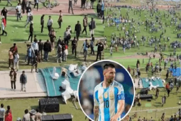 दिग्गज फुटबॉलर लियोनल मेसी अपने तीन दिवसीय भारत दौरे के पहले चरण में शनिवार को कोलकाता पहुंचे। साल्ट लेक स्टेडियम में उनका कार्यक्रम था। मेसी की झलक पाने के लिए स्टेडियम में हजारों फैंस ने घंटों इंतजार किया। मेसी 10 मिनट के लिए स्टेडियम में पहुंचे थे। स्टेडियम में मौजूद फैंस उन्हें देख नहीं पाए और उनके जाने के बाद भारी बवाल किया और स्टेडियम में तोडफ़ोड़ की।