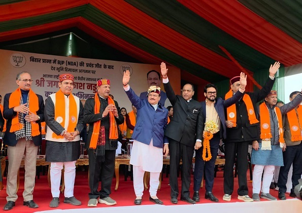 शिमला ,14 दिसंबर (आरएनएस)। भारतीय जनता पार्टी के राष्ट्रीय अध्यक्ष जगत प्रकाश नड्डा ने अभिनंदन रैली को संबोधित करते हुए अपने वक्तव्य की शुरुआत माँ तारा देवी, जाखू मंदिर के आराध्य बजरंग बली के आशीर्वाद के साथ की। उन्होंने कहा कि यह केवल एक राजनीतिक सभा नहीं, बल्कि राष्ट्र निर्माण के संकल्प को दोहराने का अवसर है। नड्डा ने कहा कि बिहार में मिली ऐतिहासिक और बंपर जीत प्रधानमंत्री नरेंद्र मोदी के प्रति बिहार की जनता के अटूट विश्वास का प्रमाण है। बिहार की माताओं-बहनों, युवाओं, किसानों और श्रमिकों ने एक बार फिर प्रधानमंत्री मोदी की नीतियों और नेतृत्व पर मुहर लगाई है। उन्होंने कहा कि बिहार का यह जनादेश पूरे देश को स्पष्ट संदेश देता है कि जो लोग घुसपैठियों के सहारे राजनीति करना चाहते हैं, उनके लिए देश में कोई स्थान नहीं है। नड्डा ने कहा कि कितनी भी यात्राएं क्यों न निकाली जाएं, जनता घुसपैठ और उनके समर्थकों को बाहर का रास्ता दिखाने का काम करेगी। जेपी नड्डा ने हिमाचल प्रदेश का उल्लेख करते हुए कहा कि पिछले विधानसभा चुनावों के दौरान उन्होंने हिमाचल की जनता से स्पष्ट कहा था कि कांग्रेस को सत्ता में लाने की गलती न करें, क्योंकि हिमाचल के विकास का एकमात्र रास्ता डबल इंजन की सरकार है।