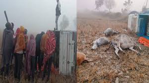 दुर्घटना के बाद जब स्थानीय लोग मौके पर पहुंचे तो पिकअप वाहन में बड़ी संख्या में गौवंश ठूंस-ठूंस कर भरे हुए मिले।
