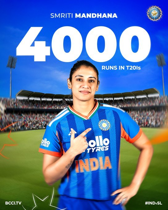 मैच में आने से पहले, मंधाना को इस मील के पत्थर तक पहुंचने के लिए 18 रनों की जरूरत थी. उन्होंने अपनी 18वीं रन पारी के पांचवें ओवर में चमारी अटापट्टू का सामना करते हुए बनाया. 29 वर्षीय खिलाड़ी ने एक्स्ट्रा कवर के ऊपर से एक हवाई शॉट खेला और 4000 टी20आई रन पूरे किए.