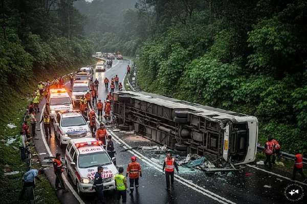 सेमारांग सर्च एंड रेस्क्यू ऑफिस के अनुसार, एक तेज रफ्तार बस का चालक नियंत्रण खो बैठा और बस सड़क के रोड बैरियर से टकराकर पलट गई। सेमारंग सर्च एंड रेस्क्यू ऑफिस के हेड बुडियोनो ने कहा कि बचाव अभियान काफी मुश्किल था क्योंकि कुछ पीडि़त बस के अंदर फंसे हुए थे और टूटे शीशे की वजह से अंदर जाने का रास्ता बंद था। बचाव दल को पलटी हुई बस के अंदर जाकर पीडि़तों तक पहुंचने के लिए रास्ता बनाना पड़ा और उन्हें बहुत सावधानी से बाहर निकालना पड़ा।