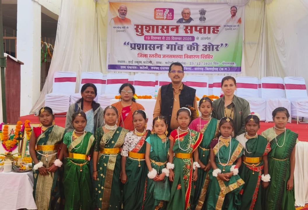 सारंगढ़ बिलाईगढ़, 23 दिसंबर 2025(आरएनएस) सुशासन सप्ताह में और प्रशासन गांव की ओर थीम पर सारंगढ़ विकासखंड के ग्राम कटेली में जनसमस्या निवारण शिविर का आयोजन किया गया, जिसमें लगभग सभी विभाग का स्टाल लगाया गया था और ग्रामीणों को शासन की जनकल्याणकारी योजनाओं की जानकारी दी। कार्यक्रम में गोद भराई का पुरस्कार, पात्र हितग्राहियों को मछली जाल एवं प्रधानमंत्री आवास योजना के अंतर्गत पूर्ण आवास प्रमाण पत्रों का वितरण किया गया। इस अवसर पर जनपद अध्यक्ष ममता सिंह, जगन्नाथ केशरवानी, भुवन मिश्रा, अरुण गुड्डू यादव, विनोद भारद्वाज, चंद्रिका ठाकुर, रोहित महिलाने, सीईओ आर.एस. नायक, डॉ. रामलाल सिदार सहित अन्य अधिकारी, कर्मचारी एवं बड़ी संख्या में ग्रामीण उपस्थित रहे।