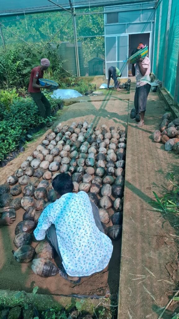 ० सीड नट से गुणवत्तापूर्ण नारियल पौध,सेमरा रोपणी में