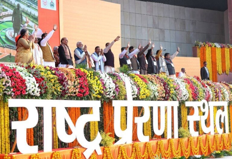 लखनऊ,25 दिसंबर (आरएनएस)। प्रधानमंत्री नरेंद्र मोदी ने 25 दिसंबर को पूर्व प्रधानमंत्री अटल बिहारी वाजपेयी की 101वीं जयंती पर उत्तर प्रदेश की राजधानी लखनऊ में ‘राष्ट्र प्रेरणा स्थल’ का उद्घाटन किया है। प्रधानमंत्री मोदी ने यहां वाजपेयी के साथ डॉ श्यामा प्रसाद मुखर्जी और पंडित दीनदयाल उपाध्याय की बनी भव्य कांस्य प्रतिमाओं पर श्रद्धा सुमन अर्पित किए और स्थल का दौरा किया। उनके साथ लखनऊ से सांसद रक्षा मंत्री राजनाथ सिंह और मुख्यमंत्री योगी आदित्यनाथ भी मौजूद रहे।