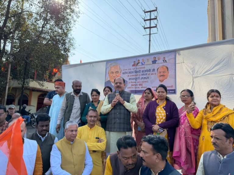 भोपाल।(आरएनएस)।भारत रत्न स्वर्गीय अटल बिहारी वाजपेयी की 101वीं जयंती पर दक्षिण-पश्चिम विधानसभा क्षेत्र के स्केटर्स बच्चों द्वारा उन्हें अनोखे अंदाज में श्रद्धांजलि दी गई।