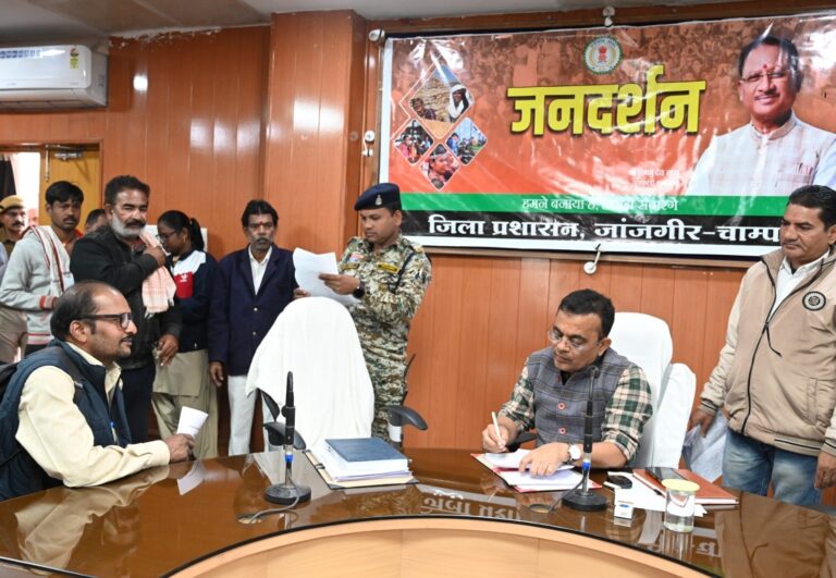 जांजगीर-चांपा 29 दिसम्बर 2025(आरएनएस) कलेक्टर जन्मेजय महोबे ने आज कलेक्टोरेट सभाकक्ष में आयोजित जनदर्शन के माध्यम से आम नागरिकों की समस्याएँ एवं मांगों को गंभीरतापूर्वक सुना। उन्होंने प्राप्त आवेदनों का संबंधित विभागीय अधिकारियों को प्रत्येक प्रकरण का समयबद्ध, पारदर्शी एवं गुणवत्तापूर्ण निराकरण सुनिश्चित करने के निर्देश दिए। आज जनदर्शन में कुल 55 आवेदन प्राप्त हुए है।