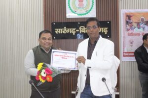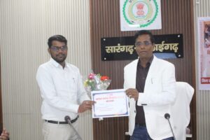सारंगढ़ बिलाईगढ़, 7 जनवरी 2026(आरएनएस) कलेक्टर डॉ. संजय कन्नौजे ने कलेक्ट्रेट सभाकक्ष में आयोजित समय-सीमा की बैठक में पिछले सप्ताह उत्कृष्ट कार्य करने पर इंद्रजीत बर्मन जिला पंचायत सीईओ, शिक्षा शर्मा डिप्टी कलेक्टर, पुष्पेंद्र राज तहसीलदार बरमकेला, दीपक जायसवाल सिविल सर्जन और सोनू साहू अनुबंधित जिला समन्वयक जनसंपर्क विभाग को सम्मानित किया गया। इस अवसर पर कलेक्टर द्वारा प्रशासनिक कार्यों में समर्पण, अनुशासन एवं उत्कृष्ट प्रदर्शन के लिए सभी अधिकारियों एवं कर्मचारियों की प्रशंसा की गई। इस अवसर पर जिले के अधिकारीगण उपस्थित थे।
