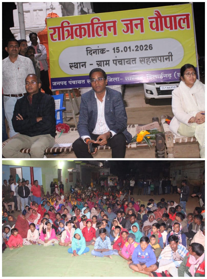 सारंगढ़ बिलाईगढ़, 16 जनवरी 2026(आरएनएस) प्रशासन गांव की ओर थीम पर कलेक्टर डॉ संजय कन्नौजे ने सारंगढ़ ब्लॉक के वनाँचल गांव सहसपानी में रात्रिकालीन जन चौपाल गुरुवार की शाम को किया, जहाँ ग्रामीणों ने बड़ी संख्या में पारंपरिक वाद्य यंत्रों के साथ कलेक्टर का स्वागत किया। कलेक्टर के निर्देश पर जिले के सभी जिला स्तरीय अधिकारी भी उपस्थित थे। कलेक्टर के आगमन पर ग्रामीणों में समाधान उत्सव के रूप में माहौल था। इस अवसर पर 5 स्थानों में अलाव का व्यवस्था किया गया था, वही चौपाल स्थल में हाईमास्ट से स्थाई प्रकाश व्यवस्था था।