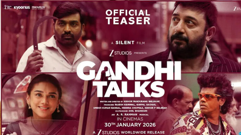 किशोर पांडुरंग बेलेकर द्वारा निर्देशित इस फिल्म में एआर रहमान ने संगीत दिया है। जाहिर है कि जब फिल्म साइलेंट है तो इसमें संगीत की भूमिका और भी महत्वपूर्ण हो जाती है। 1 मिनट 34 सेकंड का ये टीजर हर किसी का ध्यान अपनी ओर खींचता है। मौन फिल्म के प्रभाव को और भी बढ़ा देता है, जिससे दर्शक हर सीन के बीच छिपे अर्थ को समझने और अनकही बातों के गहरे अर्थ को महसूस करने के लिए उत्सुक हो जाते हैं। ‘गांधी टॉक्सÓ 30 जनवरी को सिनेमाघरों में रिलीज होगी।