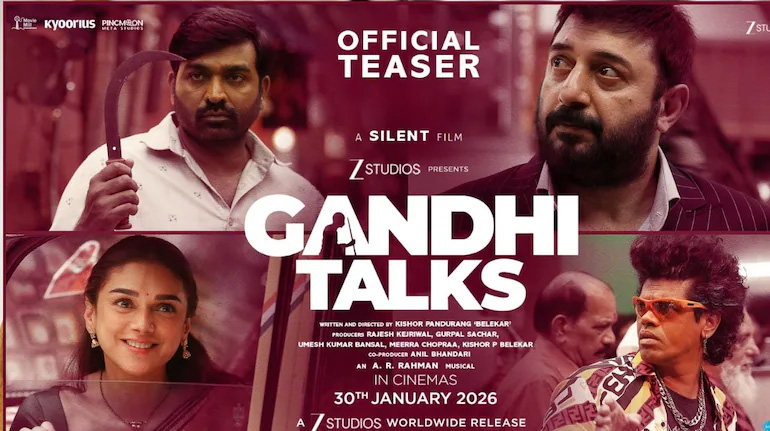 साउथ के दिग्गज अभिनेता विजय सेतुपति की आगामी फिल्म ‘गांधी टॉक्सÓ का टीजर जारी हुआ। मेकर्स ने विजय के फैंस को तोहफा देते हुए फिल्म का टीजर रिलीज किया है। इस फिल्म की खासियत ये है कि यह एक साइलेंट फिल्म है। बीते दिनों फिल्म की घोषणा की गई थी। अब आज इसका टीजर सामने आया है, यहां जानिए कैसा है टीजर।