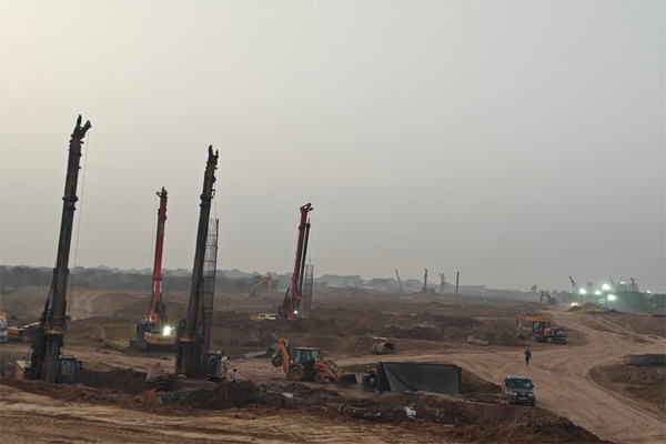 निर्माण स्थल पर कैंप एवं बैचिंग प्लांट का लगभग 90 प्रतिशत कार्य पूर्ण कर लिया गया है। एक्वाडक्ट हेतु प्रस्तावित 15 टेस्ट पाइल में से 8 टेस्ट पाइल का कार्य पूर्ण हो चुका है। कुल 5060 वर्किंग पाइल प्रस्तावित हैं, जिनमें से लगभग 860 पाइल का निर्माण पूर्ण किया जा चुका है। प्रतिदिन 15-20 पाइल का कार्य 12 रिग मशीनों की सहायता से किया जा रहा है। औसतन 500 क्यूबिक मीटर कंक्रीट कार्य प्रतिदिन किया जा रहा है। साइट पर लगातार शिफ्टों में कार्य जारी है।