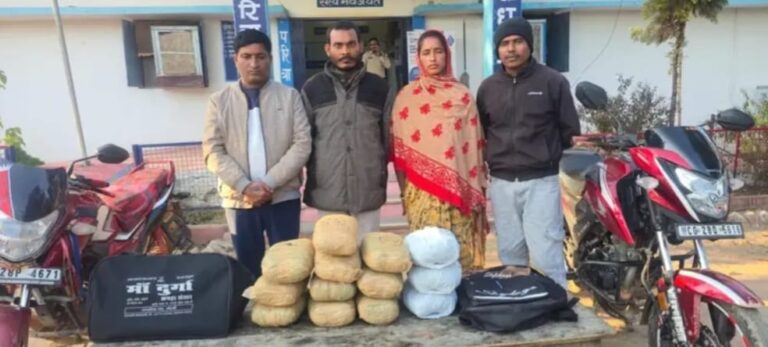 बिलासपुर 24 जनवरी 2026(आरएनएस) अवैध मादक पदार्थों के खिलाफ चलाए जा रहे प्रहार अभियान के तहत बेलगहना चौकी पुलिस ने बड़ी कार्रवाई करते हुए गांजा तस्करी के अंतरराज्यीय नेटवर्क का खुलासा किया है। पुलिस ने कोटा-बेलगहना मार्ग पर घेराबंदी कर दो मोटरसाइकिलों से गांजा का परिवहन कर रहे चार आरोपियों को गिरफ्तार किया है।पुलिस ने आरोपियों के कब्जे से 13 किलोग्राम गांजा, दो मोटरसाइकिल, चार मोबाइल फोन और नकदी बरामद किया है। जब्त गांजा की कीमत लगभग 6 लाख 50 हजार रुपये बताई गई है। जबकि कुल जब्त संपत्ति का मूल्य 8 लाख 41 हजार 250 रुपये आंका गया है। 22 जनवरी को बेलगहना चौकी पुलिस को मुखबिर से सूचना मिली थी कि कुछ लोग मोटरसाइकिलों से गांजा लेकर कोटा की ओर से आ रहे हैं। सूचना मिलते ही वरिष्ठ अधिकारियों के निर्देश पर टीम गठित कर ग्राम पंडरापथराके पास घेराबंदी की गई। कार्रवाई के दौरान दो मोटरसाइकिलों पर सवार तीन पुरुष और एक महिला को रोका गया। तलाशी लेने पर उनके पास से भारी मात्रा में गांजा बरामद किया गया।गिरफ्तार आरोपियों में गजेन्द्र कुमार खत्री, नीरज उर्फ मोंटू, मंगलू राम साहू और सरस्वती साहू शामिल हैं। पूछताछ में मुख्य आरोपी गजेन्द्र कुमार खत्री ने गांजा ओडिशा के बलांगीर से लाकर लोरमी और आसपास के इलाकों में बिक्री करना स्वीकार किया है। पुलिस ने सभी आरोपियों के खिलाफ एनडीपीएस एक्ट की धारा 20 (बी) के तहत अपराध दर्ज कर उन्हें न्यायिक अभिरक्षा में भेज दिया है।पुलिस अधिकारियों का कहना है कि नशे के कारोबार से अर्जित अवैध संपत्ति पर भी वैधानिक कार्रवाई की जाएगी और इस नेटवर्क से जुड़े अन्य लोगों की तलाश जारी है। बेलगहना पुलिस द्वारा क्षेत्र में अवैध नशे के खिलाफ लगातार सख्त अभियान चलाया जा रहा है।