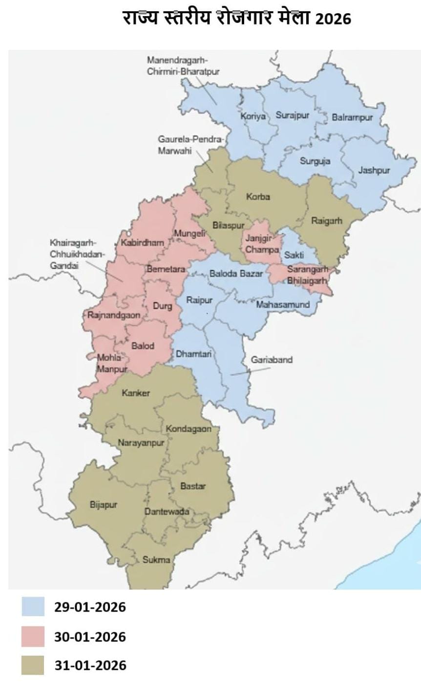 सारंगढ़ बिलाईगढ़, 24 जनवरी 2026 (आरएनएस) कौशल विकास, तकनीकी शिक्षा एवं रोजगार विभाग द्वारा 29, 30 एवं 31 जनवरी 2026 को शासकीय इंजीनियरिंग महाविद्यालय सेजबहार रायपुर में राज्य स्तरीय रोजगार मेला का आयोजन किया जा रहा है। रोजगार मेला में निजी क्षेत्र के तकनीकी एवं गैर तकनीकी के लगभग 15 हजार पदों पर चयन हेतु साक्षात्कार लिया जाएगा। राज्य स्तरीय रोजगार मेला में 30 जनवरी 2026 को सारंगढ़ बिलाईगढ़ जिले के 1513 आवेदकों का इंटरव्यू लिया जाएगा। रोजगार मेला में शामिल होने के लिए ऑनलाईन पोर्टल ईरोजगार डॉट सीजी डॉट जीओवी डॉट इन www.erojgar.cg.gov.in में रोजगार पंजीयन एवं रोजगार मेला के लिए पंजीयन आवश्यक है। जिन आवेदकों ने ऑनलाईन पोर्टल में रोजगार पंजीयन एवं रोजगार मेला हेतु पंजीयन नहीं किया है, वह पोर्टल पर अपना पंजीयन कर सकते हैं। रोजगार मेला में साक्षात्कार के लिए शामिल होने वाले अभ्यर्थियों को समस्त शैक्षणिक योग्यता प्रमाण पत्र की ओरिजिनल और फोटोकॉपी , 2 पासपोर्ट साईज फोटो, आधार कार्ड, अनुभव प्रमाण पत्र सहित अन्य दस्तावेज को साथ लाना होगा। इस संंबंध में विस्तृत जानकारी जिला रोजगार एवं स्वरोजगार अधिकारी रामजीत राम से मोबाइल नंबर 9424184279 से प्राप्त की जा सकती है।