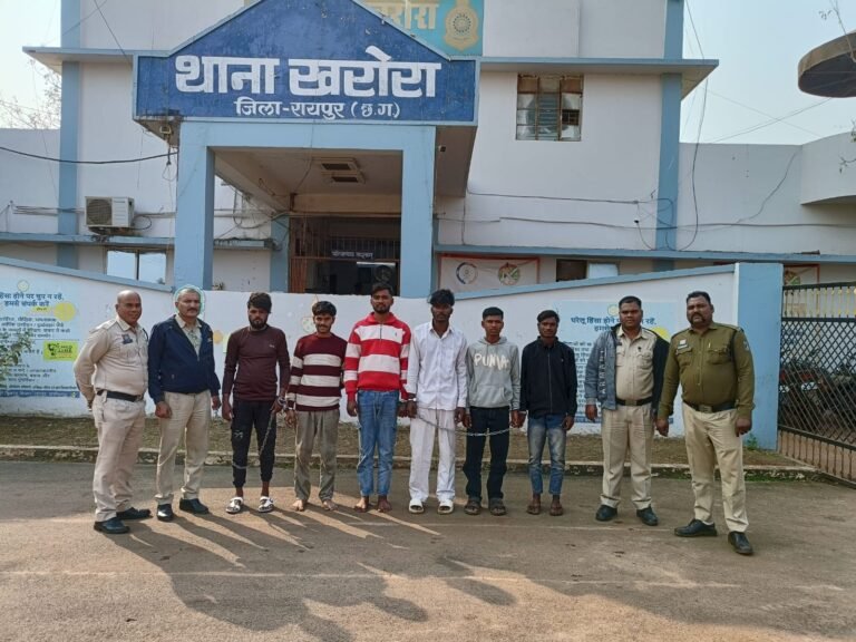 यह कार्रवाई पुलिस अधीक्षक श्वेता सिन्हा श्रीवास्तव के निर्देश, अतिरिक्त पुलिस अधीक्षक प्रशांत शुक्ला के मार्गदर्शन एवं एसडीओपी वीरेन्द्र चतुर्वेदी के पर्यवेक्षण में थाना प्रभारी खरोरा के नेतृत्व में की गई। सभी आरोपियों को न्यायालय में पेश कर न्यायिक रिमांड पर भेज दिया गया है।