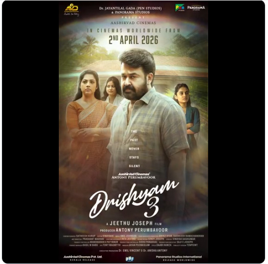 फिल्म की रिलीज के बारे में जानकारी देते हुए मलयालम सुपरस्टार मोहनलाल ने एक्स हैंडल पर अनाउंसमेंट टीजर शेयर किया है और कैप्शन में लिखा है, साल बीत गए, लेकिन अतीत नहीं बीता, दृश्यम3 वर्ल्डवाइड रिलीज 2 अप्रैल, 2026.