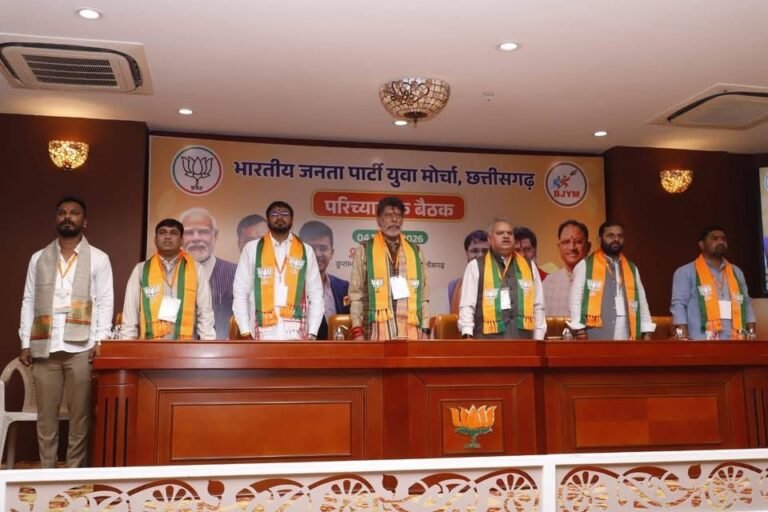 उन्होंने कहा कि अगले एक साल में युवा मोर्चा को वन बूथ 10 कार्यकर्ता बनाने पर कार्य करना है। हमें प्रत्येक बूथ को मजबूत बनाने का काम करना है। भाजपा का एक-एक कार्यकर्ता राष्ट्र निर्माण की भावना से कार्य करता है। भाजपा प्रदेश अध्यक्ष किरण देव ने बैठक को संबोधित करते हुए कहा कि हम विश्व की सबसे बड़ी राजनीति पार्टी के कार्यकर्ता है और हम एक परिवार के रूप में कार्य करते है। भाजपा का एक-एक कार्यकर्ता राष्ट्र निर्माण की भावना से कार्य करते है। उन्होंने कहा कि पिछले कांग्रेस शासनकाल में प्रदेश में भूपेश बघेल सरकार ने विकास के नाम पर एक भी ईट नहीं लगाई और तत्कालीन भूपेश सरकार में प्रदेश में हाकाकार मचा के रख दिया था। प्रदेश में पुन: विकास के कार्य भाजपा की सरकार बनते ही आरंभ हुआ और लगातार विकास के आयाग गढ़े जा रहे है। उन्होने कहा कि युवा मोर्चा का प्रत्येक कार्यकर्ता सदैव सक्रिय रहता है और पार्टी के कार्यो को बूथ स्तर तक जाकर उनका क्रियान्वयन कराने में आगे रहते है। भाजयुमो प्रदेश अध्यक्ष राहुल टिकारिहा ने बैठक में युवा मोर्चा के आगामी कार्ययोजना पर चर्चा करते हुए कहा कि हमें पार्टी द्वार दिए गए कार्यों को समयबध्द तरीके से पूरा करना है। इस दौरान बैठक में भाजयुमो प्रदेश महामंत्री जितेन्द्र देवांगन कुणाल ठाकुर, प्रदेश उपाध्यक्ष कोमल पटेल, पीयुष ठाकुर, भीमा मड़कम, अमन प्रताप सिंह, गौरी गुप्ता, शुभम जायसवाल, मोनू बहादुर सिंह, लोकेश साहू, विशाल पाण्डेय, सन्नी केसरी, आकाश ठाकुर, प्रिया सिंह, मोरध्वज पैंकरा, गौरव पाण्डेय, श्रेणिक बोथरा, ऋषि भसिन, कीर्ति पाढ़ी, अंकित द्विवेदी, अमित सिंघल, वासु शर्मा, अनमोल तिवारी, सुनील शुक्ला, विभूति कश्यप, साक्षी बघेल, पूर्णिमा चौकसे, यशपाल लोधी, विकास शुक्ला, अमित मिश्रा, शशांक साहू सहित बड़ी संख्या में भाजयुमो पदाधिकारी, जिलाध्यक्ष एवं कार्यकर्ता मौजूद थे।