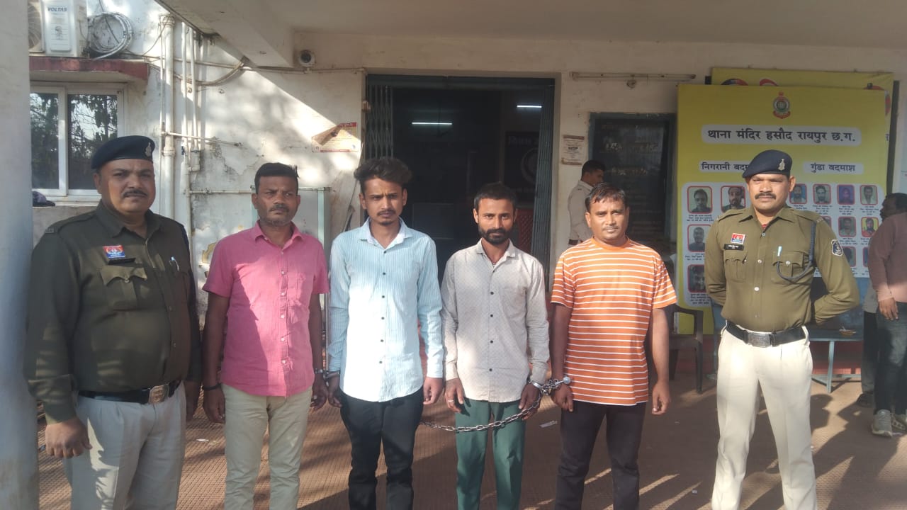 रायपुर 8 फरवरी 2026 (आरएनएस) जिले में जुआ और सट्टा जैसी अवैध गतिविधियों पर प्रभावी अंकुश लगाने के लिए वरिष्ठ पुलिस अधिकारियों के निर्देश पर लगातार सघन अभियान चलाया जा रहा है। इसी क्रम में एंटी क्राइम एंड साइबर यूनिट तथा थाना मंदिर हसौद पुलिस की संयुक्त कार्रवाई में ताश के पत्तों पर हार-जीत का दांव लगाते चार जुआरियों को रंगे हाथों गिरफ्तार किया गया है।दिनांक 07 फरवरी 2026 को एंटी क्राइम एंड साइबर यूनिट को मुखबिर से सूचना मिली कि थाना मंदिर हसौद क्षेत्र अंतर्गत गैस गोदाम के पास कुछ लोग खुलेआम ताशपत्ती से रुपये का दांव लगाकर जुआ खेल रहे हैं। सूचना की पुष्टि होते ही वरिष्ठ अधिकारियों के निर्देशन में संयुक्त टीम ने मौके पर दबिश दी और जुआ खेलते चार आरोपियों को धर दबोचा।पुलिस ने आरोपियों के कब्जे से नकद 4,200 रुपये, ताशपत्ती, 04 मोटर सायकल तथा 01 क्रेटा कार जब्त की है। जप्त मशरूका की कुल कीमत लगभग 14 लाख 74 हजार 200 रुपये आंकी गई है, जिससे इलाके में खलबली मच गई,गिरफ्तार आरोपियों में प्रतीक चंद्राकर (28) कौशल चंद्राकर (45) संजय जायसवाल (35) राजेश साहू (28) शामिल हैं, सभी निवासी तेलीबांधा थाना क्षेत्र, रायपुर।चारों आरोपियों के विरुद्ध थाना मंदिर हसौद में अपराध क्रमांक 61/26, धारा 3(2) छत्तीसगढ़ राज्य जुआ प्रतिषेध अधिनियम 2022 के तहत अपराध पंजीबद्ध कर वैधानिक कार्रवाई की गई है।पुलिस अधिकारियों ने साफ कहा है कि जुआ-सट्टा जैसी अवैध गतिविधियों में लिप्त लोगों के विरुद्ध आगे भी इसी तरह सख़्त और निरंतर कार्रवाई जारी रहेगी।