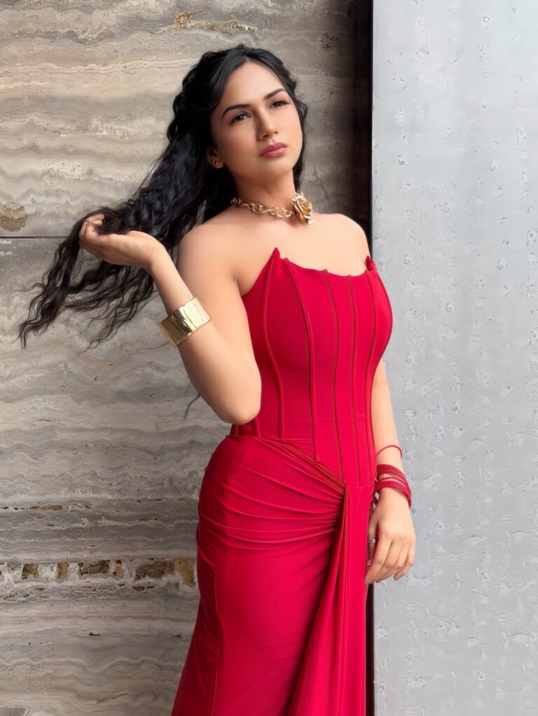 आकांक्षा चमोला ने अपने लुक को परफेक्ट रखा है. एक्ट्रेस ने रेड गाउन के साथ गोल्डन नेकपीस कैरी किया, जो काफी यूनिका दिखा और बालों को कर्ली करवाए. इस लुक में वह काफी क्यूट लगीं. आकांक्षा ने मिनिमल मेकअप से अपने लुक को एलिगेंट बनाने के काम किया.