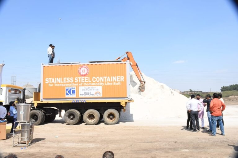 अनलोडिंग की प्रक्रिया भी उतनी ही आसान और तेज़ रही। हाइड्रॉलिक टिपर ट्रक की सहायता से कंटेनर को लगभग 45 डिग्री तक झुकाकर 5 मिनट से भी कम समय में पूरा नमक खाली कर दिया गया। कंटेनर के साइड में दिए गए दरवाज़ों से नमक अपने आप नीचे गिर जाता है, जिससे कोई अवशेष नहीं बचता और अतिरिक्त सफाई की जरूरत भी नहीं पड़ती।