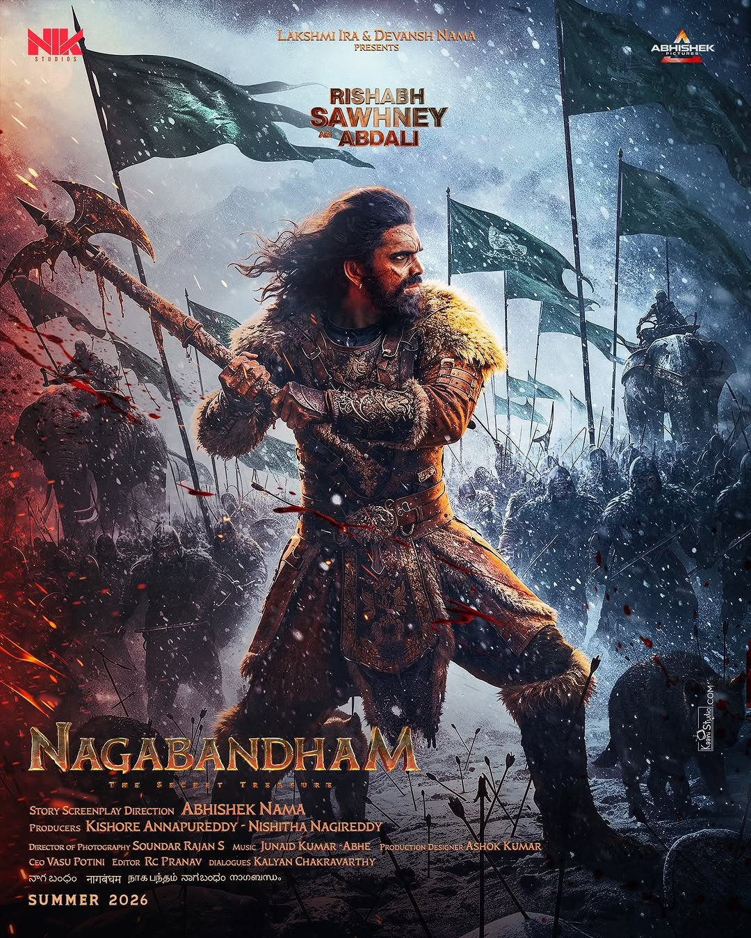 फाइटर में अपने दमदार अंदाज़ से पहचान बना चुके ऋषभ साहनी ने नागबंधम में भी ज़बरदस्त असर छोड़ा है। फिल्म में वह कुख्यात अफगान सुल्तान अब्दाली के रोल में नजर आएंगे। 1750 के दौर पर बनी यह कहानी भारत में अब्दाली के हमलों को दिखाती है, जहां मंदिरों की लूट, दौलत की भूख और उसकी बेरहम फितरत को सामने रखा गया है।