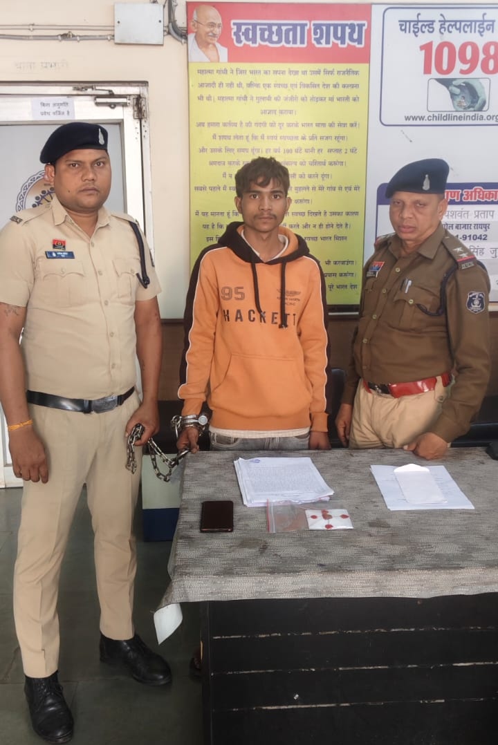 पूछताछ में युवक ने अपना नाम चित्रांश पवार उर्फ गोल्डी (20 वर्ष) निवासी राजा तालाब अमर चौक, थाना सिविल लाइन रायपुर बताया। तलाशी लेने पर उसके कब्जे से 6.32 ग्राम एमडीएमए बरामद किया गया। साथ ही घटना में प्रयुक्त एक मोबाइल फोन भी जब्त किया गया। जप्त मशरूका की कुल कीमत लगभग 80 हजार रुपये आंकी गई है।