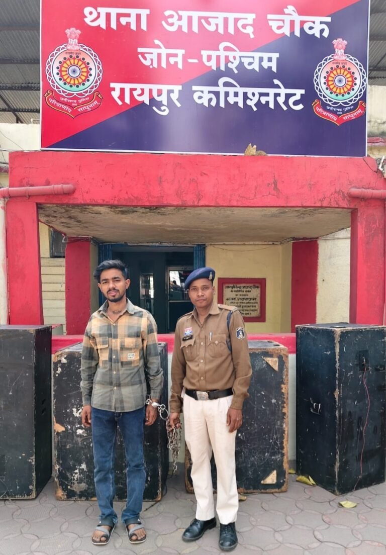 रायपुर, 19 फरवरी 2026(आरएनएस) शहर के आमापारा इलाके में उस वक्त सनसनी फैल गई जब एक युवक खुलेआम हाथ में धारदार चाकू लेकर लोगों को डराने-धमकाने लगा। रायपुर पुलिस कमिश्नरेट के डीसीपी वेस्ट जोन के निर्देशन में थाना आजाद चौक पुलिस ने त्वरित कार्रवाई करते हुए आरोपी को मौके से गिरफ्तार कर लिया। घटना कारी गार्डन के पास की बताई जा रही है।