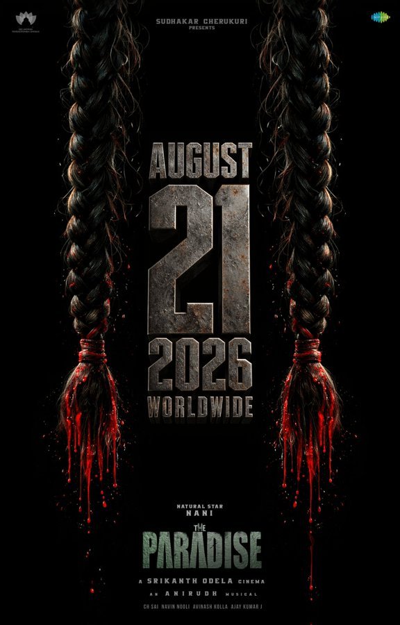 द पैराडाइज के मेकर्स ने फिल्म की नई रिलीज डेट का खुलासा किया है। साथ ही एक दमदार और इंटेंस नया पोस्टर भी जारी किया है। पोस्टर में दो लंबी गुथी हुई चोटियां नजर आ रही हैं, जिनके सिरों से खून टपक रहा है। इसका बैकग्राउंड डार्क और रहस्यमय है। यह विजुअल इशारा देता है कि फिल्म की कहानी काफी इंटेंस होगी और दर्शकों को एक्शन थ्रिलर का अनुभव मिलेगा। पोस्टर पर लिखा है 21 अगस्त 2026 को दुनियाभर में रिलीज होगी।