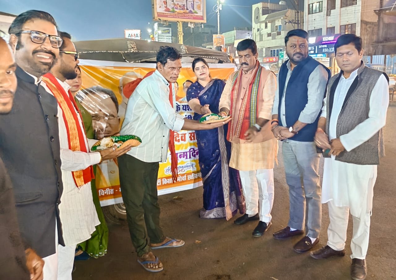 रायपुर, 21 फरवरी (आरएनएस)। छत्तीसगढ़ के मुख्यमंत्री विष्णुदेव साय के जन्मदिन पर भारतीय जनता पार्टी किसान मोर्चा द्वारा सेवा भाव के साथ भोजन वितरण कार्यक्रम आयोजित कर जरूरतमंद लोगों को प्रेमपूर्वक भोजन वितरित किया गया। कार्यक्रम में सभी ने मुख्यमंत्री श्री साय के स्वस्थ, दीर्घायु एवं सफल नेतृत्व की कामना की। किसान मोर्चा का यह सेवा कार्य संगठन की जनसेवा और समर्पण भावना का प्रतीक है। इस कार्यक्रम में किसान मोर्चा के प्रदेश अध्यक्ष आलोक सिंह ठाकुर, देवेंद्र सिंह ठाकुर, प्रशांत सिंह ठाकुर, प्रवक्ता रवींद्र सिंह ठाकुर मीडिया प्रभारी वैभव वैष्णव सहित बड़ी संख्या में कार्यकर्ता एवं पदाधिकारी उपस्थित रहे।