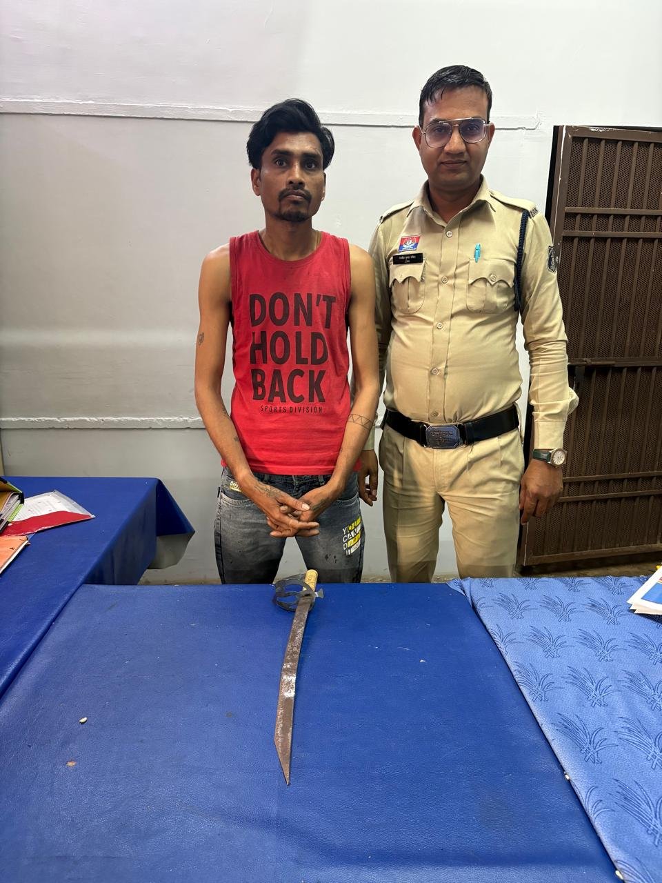 इसी अभियान के दौरान थाना डी.डी. नगर क्षेत्र अंतर्गत शीतला मंदिर के पीछे, पुराना चंगोराभाठा इलाके में एक युवक द्वारा तलवार लहराकर लोगों को डराने-धमकाने की सूचना पुलिस को मिली। बताया गया कि आरोपी गली में खुलेआम लोहे की कट्टानुमा तलवार लहराकर राहगीरों में दहशत फैला रहा था। सूचना मिलते ही पुलिस टीम ने मौके पर पहुंचकर घेराबंदी की और संदेही युवक को धर दबोचा।