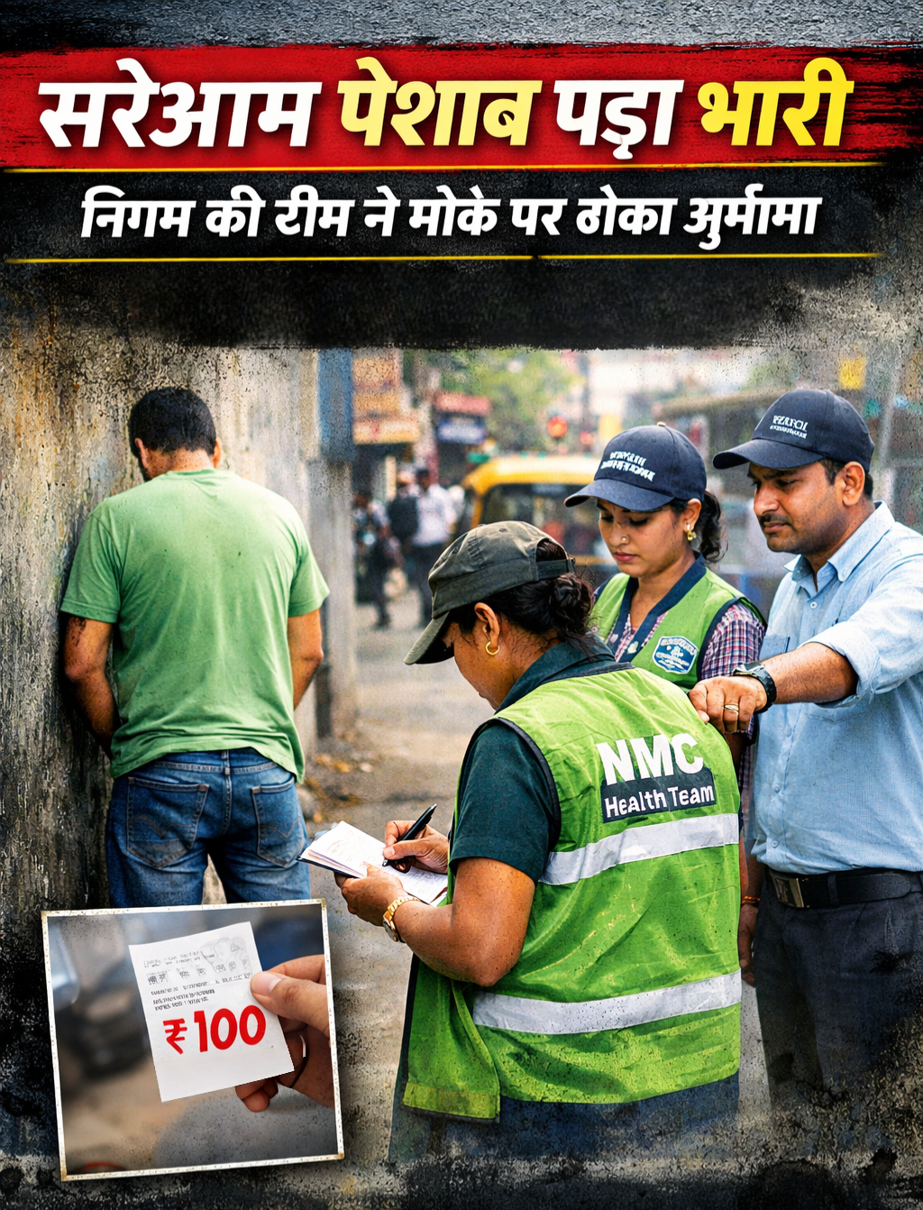यह कार्रवाई नगर पालिक निगम रायपुर के जोन क्रमांक 9 स्वास्थ्य विभाग की टीम ने वार्ड क्रमांक 51 क्षेत्र में की। स्वच्छ सर्वेक्षण 2025-26 की तैयारियों के तहत टीम सफाई व्यवस्था का प्रत्यक्ष निरीक्षण कर रही थी। इसी दौरान एक व्यक्ति सार्वजनिक मार्ग पर खुलेआम पेशाब करते हुए पाया गया। टीम ने तुरंत हस्तक्षेप कर उसे स्वच्छता नियमों का पालन करने की सख्त हिदायत दी और 100 रुपये का स्पॉट फाइन वसूल किया।