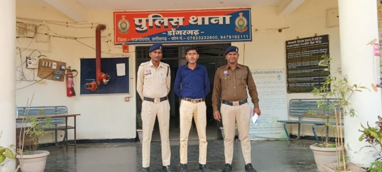 मिली जानकारी के अनुसार दिनांक 24-02-2026 को प्रार्थी धीरज साहू, पिता स्व. रामकुमार साहू, थाना उपस्थित आकर रिपोर्ट दर्ज कराया कि आरोपी देवेन्द्र कुमार गोरले, पिता स्व. प्रेमलाल गोरले, निवासी गौतम नगर वार्ड नं. 02, डोंगरगढ़, जिला राजनांदगांव एवं जय प्रकाश यादव द्वारा कलेक्टर ऑफि स खैरागढ़ में कंप्यूटर ऑपरेटर की नौकरी लगवाने के नाम पर अलग अलग लोगो से11 लाख रुपये की ठगी की गई है। प्रार्थी की रिपोर्ट पर आरोपियों के विरुद्ध धारा 420, 34 भादवि के तहत अपराध पंजीबद्ध कर विवेचना में लिया गया। घटना की गंभीरता को दृष्टिगत रखते हुए पुलिस अधीक्षक राजनांदगांव अंकिता शर्मा के दिशा निर्देश पर, अतिरिक्त पुलिस अधीक्षक कीर्तन राठौर के मार्गदर्शन एवं एसडीओपी डोंगरगढ़ केशरी नंदन नायक के पर्यवेक्षण में थाना प्रभारी निरीक्षक संतोष जायसवाल द्वारा तत्काल टीम गठित कर कार्यवाही की गई। विवेचना के दौरान आरोपी देवेन्द्र कुमार गोरले को हिरासत में लेकर पूछताछ की गई। अपराध में संलिप्तता के पर्याप्त साक्ष्य पाए जाने पर आरोपी को 24 घंटे के भीतर गिरफ्तार कर न्यायालय में पेश किया गया, जहां से उसे न्यायिक रिमांड पर जेल भेजा गया।