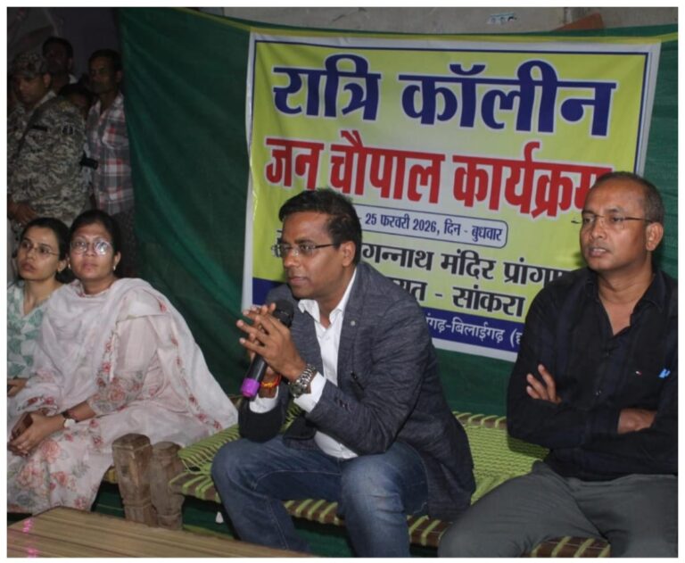 सारंगढ़ बिलाईगढ़, 26 फ़रवरी 2026(आरएनएस) कलेक्टर डॉ. संजय कन्नौजे ने जिले के अंतिम छोर में ओड़िशा से घिरे जिले के गांव सांकरा में बुधवार को रात्रिकालीन जनचौपाल लगाकर ग्रामीणों की समस्याएं सुनीं। सरिया तहसील के इस गांव में जगन्नाथ मंदिर के प्रांगण में खाट पर बैठक कर कलेक्टर ने चौपाल में लोगों से मुलाक़ात की, जिसमें जिला पंचायत सीईओ इंद्रजीत बर्मन, जिला एवं ब्लॉक स्तर के सभी विभागों के अधिकारी, डिप्टी कलेक्टर शिक्षा शर्मा, एसडीएम सारंगढ़ वर्षा बंसल उपस्थित थीं। यह गांव जिला मुख्यालय से लगभग 54 किलोमीटर दूर स्थित है, जहाँ जनसंख्या 5500 से अधिक है। चौपाल में बड़ी संख्या में ग्रामीण उपस्थित रहे।ग्रामीण सुबल दीवान ने कहा कि इतने दूरस्थ क्षेत्र में कलेक्टर का रात्रिकालीन चौपाल लगाकर समस्याएं सुनना सराहनीय पहल है।