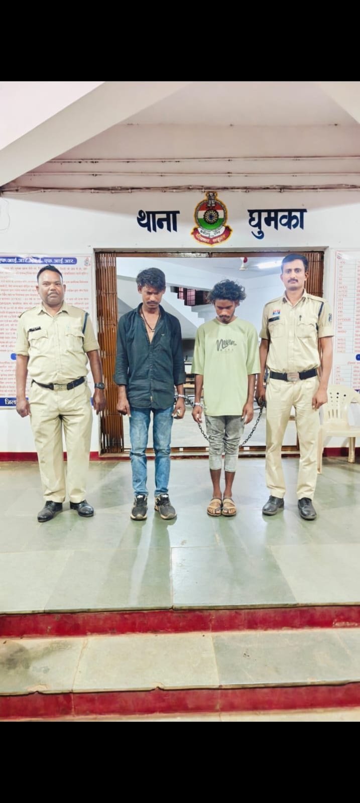 मौके पर पहुंची पुलिस टीम ने दोनों को पकड़ लिया। आरोपियों की पहचान गणेश यादव (28 वर्ष) पिता ईश्वरी यादव एवं दुर्गेश निषाद (19 वर्ष) पिता संतोष निषाद दोनों निवासी ग्राम घुमका, थाना घुमका, जिला राजनांदगांव के रूप में हुई।