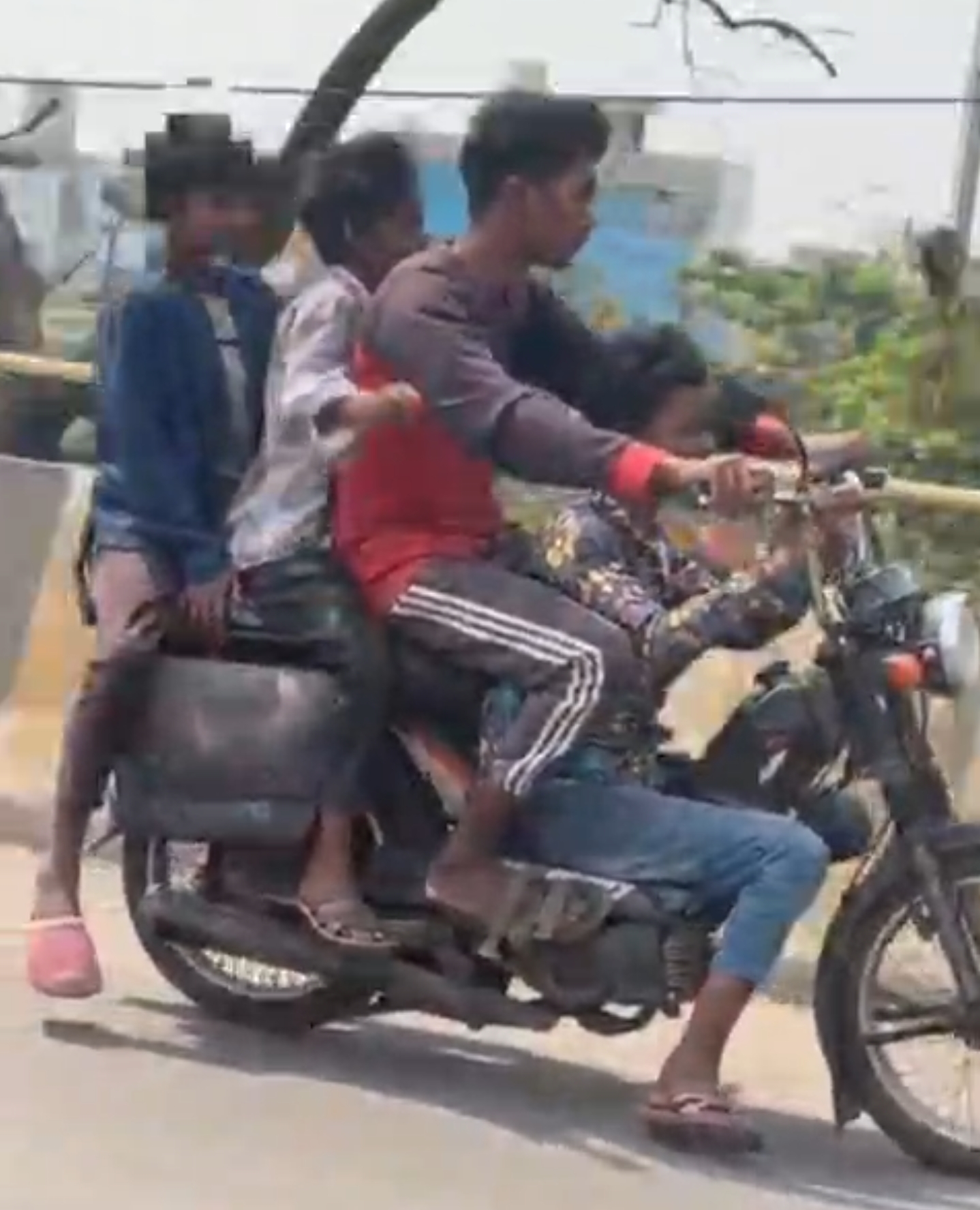 वायरल वीडियो में साफ देखा जा सकता है कि एक बाइक पर चारों बच्चे सवार हैं और बिना किसी सुरक्षा के बेखौफ सड़क पर वाहन दौड़ा रहे हैं। चौंकाने वाली बात यह है कि बाइक चलाने वाला भी नाबालिग बताया जा रहा है। इस तरह की लापरवाही न केवल यातायात नियमों का उल्लंघन है, बल्कि कभी भी बड़े हादसे को न्योता दे सकती है।